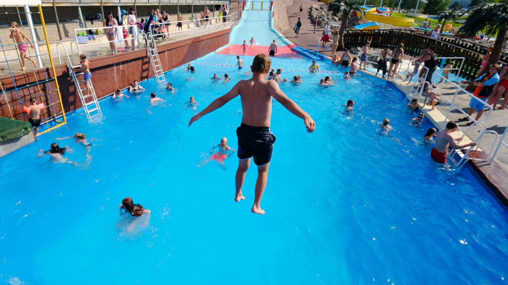 I vattenlandet på Leksand Sommarland hittar du denna populära pool med ett djup på hela 3,5 meter – perfekt för stora plask och modiga hopp.