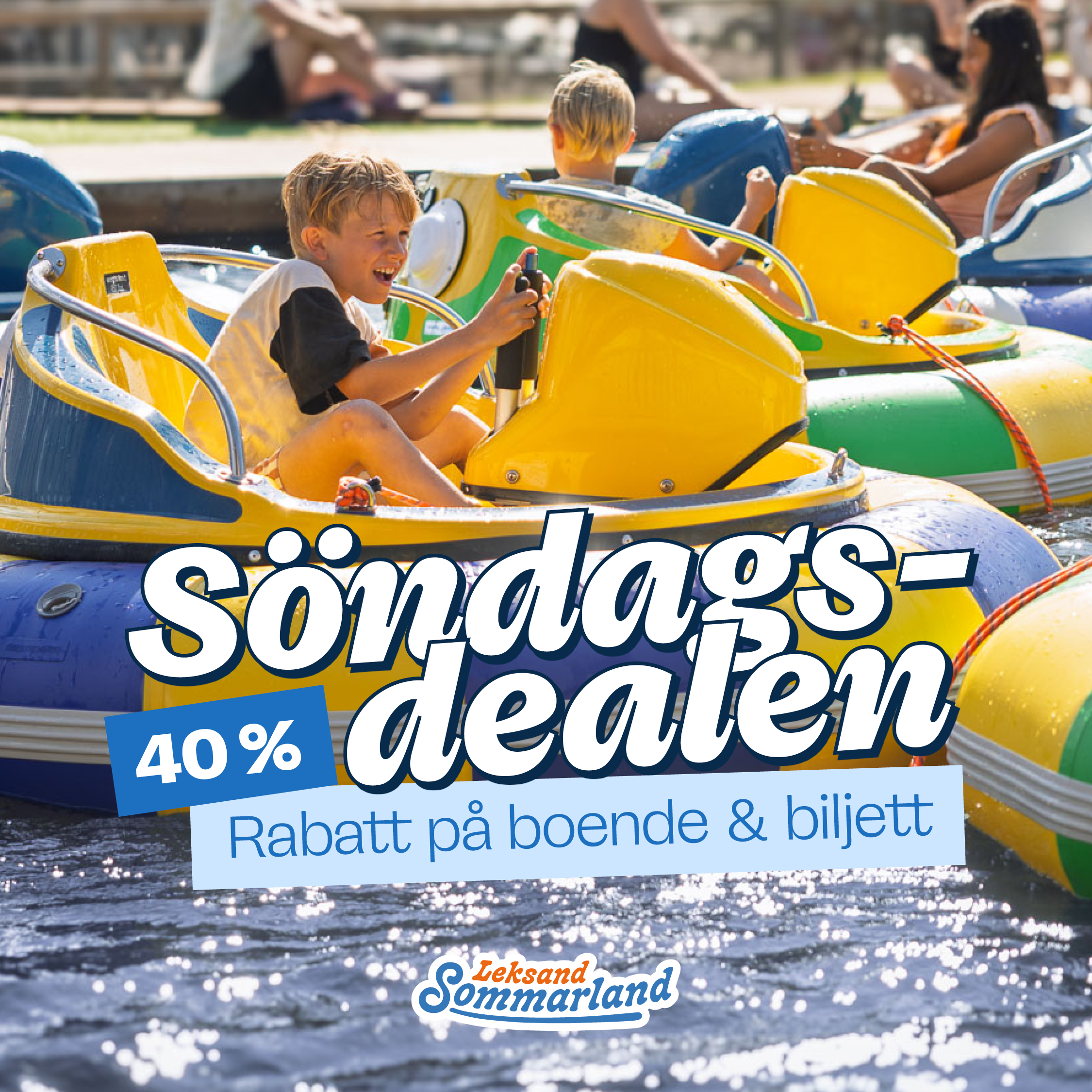 Boka boende söndag till måndag med 40 % rabatt inklusive 40 % rabatt på entrén till Leksand Sommarland. När tempot lugnar sig och många åker hem kan ni istället checka in, byta om till badkläder och kliva rakt in i äventyret. Här bor ni granne med vattenlandet och har två dagar på er att uppleva alla 48 attraktioner – fyllda av skratt, bad och tid tillsammans. Gör söndagen till sommarens bästa dag och njut lite längre av allt som hör sommaren till.